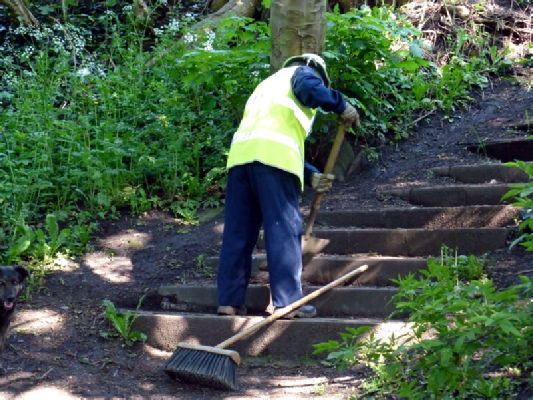 Photograph 3. Volunteer cleaning the steps