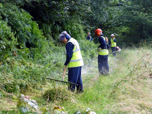 Numbers of volunteers returned to a more normal level for another day of area strimming.
