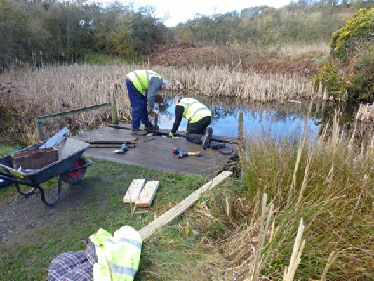 Meanwhile, a team of two repaired the hole in the dipping platform at the nearby pond caused by a barbeque being placed on the timber last summer.