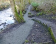 The path’s surface is always wet in that area and so additional drainage channels were dug to direct the water seeping from the adjacent hillside into an open channel across the path and hence into the river.