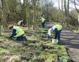 During the preceding days wheelbarrows and tools had been taken to Holywell and another small group of volunteers set out canes for the new planting positions. So on the Tuesday morning there were three different meeting places, with the Holywell Group carefully lifting the trees and then together with the Crowhall Group transporting trees, guards and stakes to the farm. From there they were then transported by car to the new planting area where the remaining volunteers had been preparing the planting holes and, on arrival of the trees, planted the saplings on the normal way.