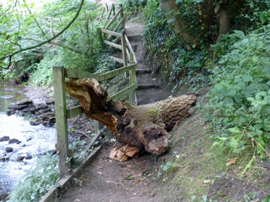 Photograph 1. Tree down across the footpath.