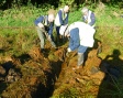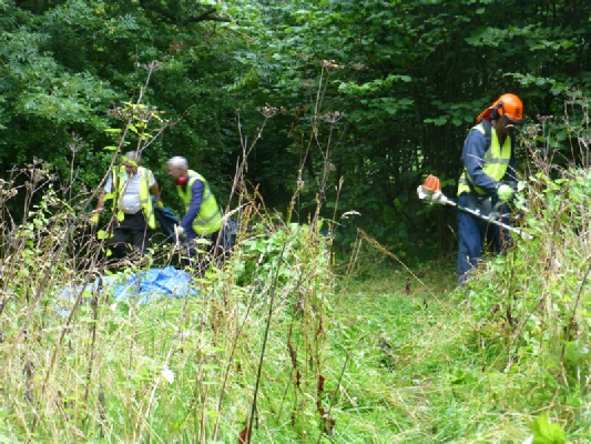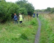 Photograph 2. Happy volunteers “strimming in the rain”