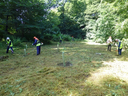 In autumn 2013 we returned to the area and cleared enough of the high vegetation to plant 15 oak saplings. A year later we were back to check them, managed to locate all 15 and cleared the vegetation that, in many cases, completely covered them. However, we found they were all alive and growing.