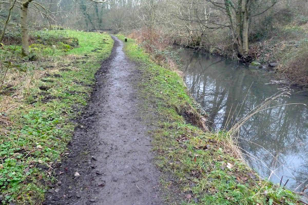 The tasks for the 10-person work party today were log-jam clearance and path maintenance, accessing the Dene from the entrance to Crow Hall Farm, under a leader fresh from the ski-slopes of St Anton. This was not one of nature’s most life-affirming days: dull, damp and muddy underfoot, but blessedly mild.