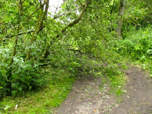 One of the cyclists who was passing stopped to tell us of a low-hanging branch that needed our attention as it was a hazard for people on their bikes. As we had no tools to tackle the job our group leader went to check on it, and decided that it should be removed the next time we are in the area.