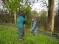 2. A squad of two attended to the dilapidated short section of fencing alongside the Crowhall Farm stile. The old posts were rotten and were replaced with new and/or reused timber. The wiring had to be removed from the old posts and attached to the new ones.