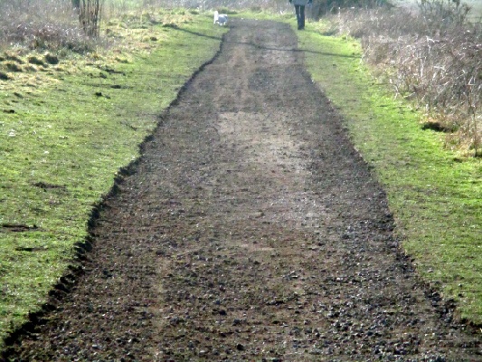 So, why not have a walk along there and admire the results? We have scraped the turf off to get down to the old gravel (dumping the turf and soil a distance away) and replenished the gravel on the path surface with new stuff from the nearby storage pile.
