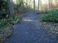 Path maintenance was the main work of the day, but a small tree clearance task was also on the agenda. Here, a tree had actually fallen across the river and its topmost branches were obstructing the north-bank path. This had been alleviated earlier by one of our volunteers acting on his own initiative. Today, what was needed was to finish the job by lopping off several of the branches with the chainsaw – which was done by our new second chainsaw operator – and dragging branches clear – by the second volunteer.