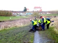 While this was happening the second group went to another blockage above another 100 yards downstream again. Two volunteers donned waders and got into the river. It was the first time for one of them, but they soon got the hang of walking knee-deep in very muddy water. The only tool we needed was a rake to drag as much debris as possible across to the river bank and pass it to the rest of group to be disposed of.