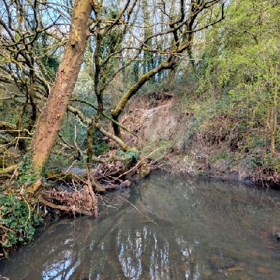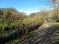 The team leader has spotted a couple of river blockages near the Holywell road bridge. So, after loading up the wheelbarrows, off we went down to the old Holywell bridge and over to the south side, then along the downstream path to just before the first flight of steps.
