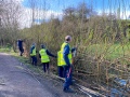We then set about pruning the willows. These grow long, whippy stems every year. Loppers and bowsaws were used to cut these down to a reasonable height. Meanwhile, one of us put on waders and got into the river to prune the willows at water’s edge (and to remove litter, and to plant willows on the other bank).